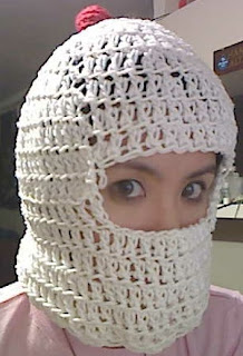 In retrospect I think the N hook came out to be way too large, so either I'll find someone with a large head to wear this, or I'll eventually take it apart and redo it with possibly a J hook. At least I will if I continue to make a hat double crocheting (dc) the whole thing. I've made a hat/mask similar to this one using a N hook but instead of dc i just single crocheted (sc) the entire thing and it fit a bit better. Hats are probably a little more tricky for me to do only because I feel like I have a smaller head than average and I only have me to test it on most of the time. Trial and error is the way to go for me. So if any one has suggestions as to how I can fix this, it'd be great. I'm open to any suggestions to fix, or even suggestions for additions to the hat.