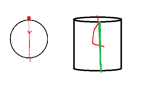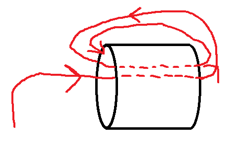 - After covering straw, make sure to take the yarn and make it go across the top of the straw (the tail is sticking out the bottom of straw), then loop underneath opposite yarn on outside, close to bottom if possible, and tie off. (red: end of yarn; green: yarn already wrapped around straw. Red goes under green)-Now swap to the iris/pupil color, and thread from bottom of straw to top of straw, and thread around the yarn that went across straw in previous step. Repeat until desired iris size and reached.